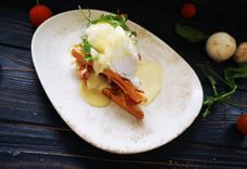 Яйца Бенедикт с тостами, беконом и голландским соусом